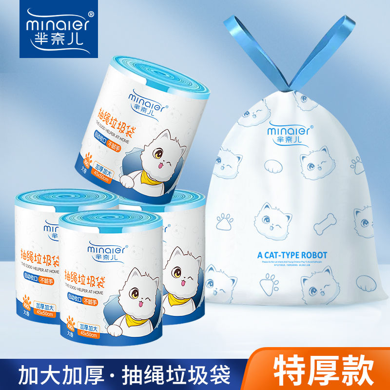 芈奈儿元气满满抽绳垃圾袋 MINAIER YUANQI DISPOSABLE BEG ROPE PULLING TYPE GABBAGE BEG 100PCS/ROLL [45ROLL/BEG]